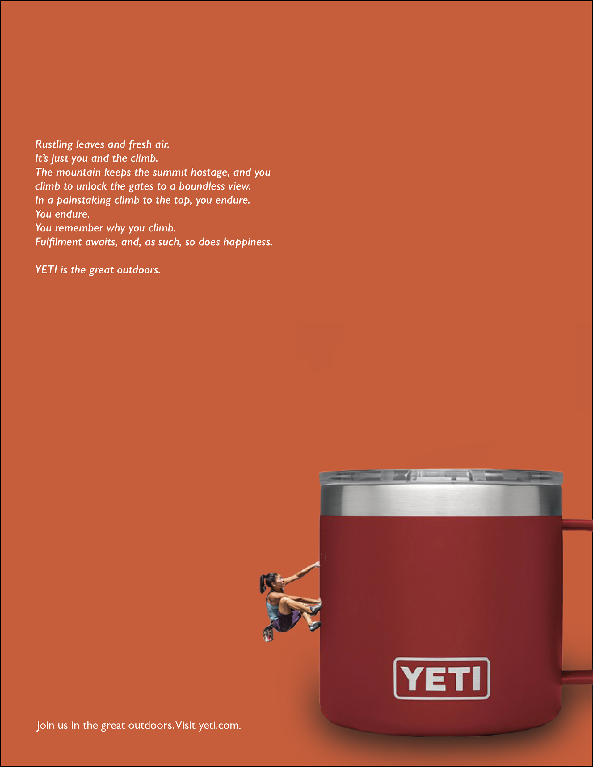 Copywriter: Shaoli Yusaf Art director: Kristen Heglin Insight: There’s more to the great outdoors than just being outdoors.